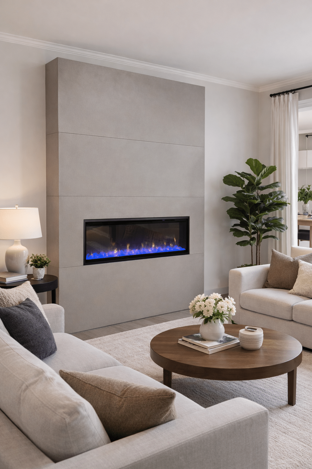 Modern Electric Concrete Fireplace – Includes Framework + Linear Insert
