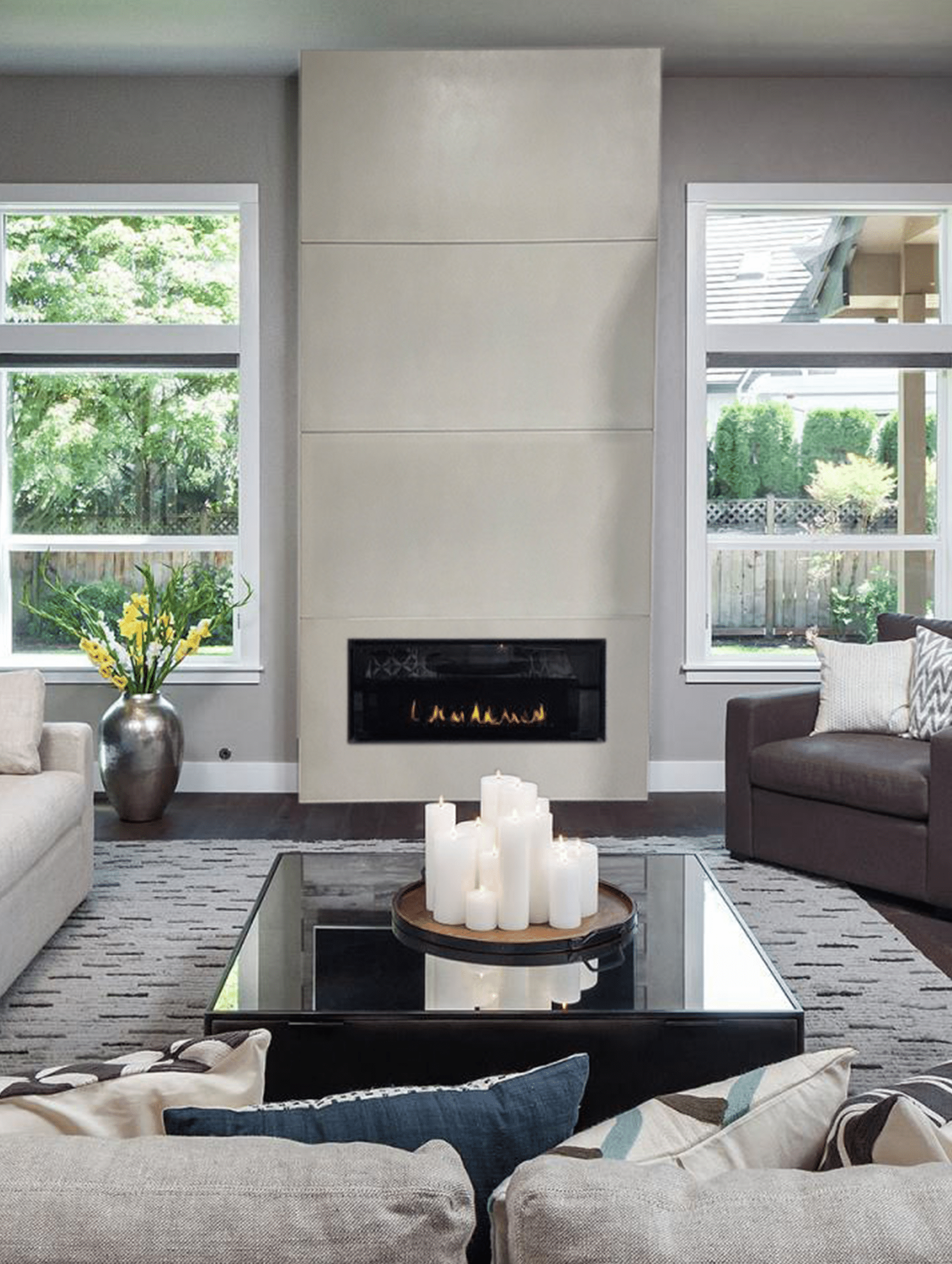 • Fireplace Insert: Dimplex IgniteXL® 50″ linear electric fireplace included
